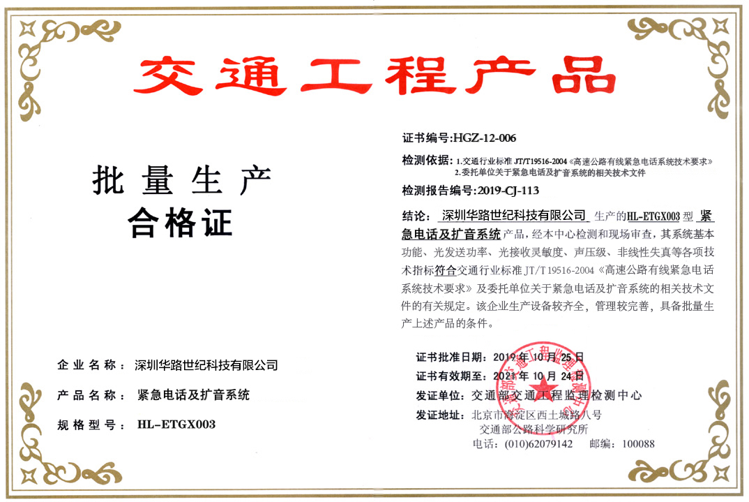 深圳市华路世纪科技有限公司是以研发、制造、生产、销售、工程设计于一体的现代化高科技企业。企业主要以光纤型隧道紧急电话广播系统、数字公共广播系统、IP网络广播系统、无线广播系统、交通设施系列、信号灯系列、应急灯系列等,并且提供完善的系统工程解决方案。公司致力为客户提供可靠、有效、高品质的通信产品及良好的售前、售后服务。公司现在拥有一支学术精湛、素质过硬、高度合作的专业化员工队伍,从面充分保障了公司的技术能力和服务标准。